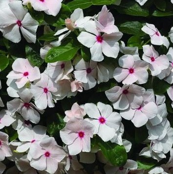 Катарантус ампельный Кора Каскад (Catharanthus roseus (Vinca) Cora Cascad). Первая и единственная серия ампельного катарантуса, обладающая резистентностью к фитофрозу. Растения прекрасно переносят жаркую погоду и прямые солнечные лучи.