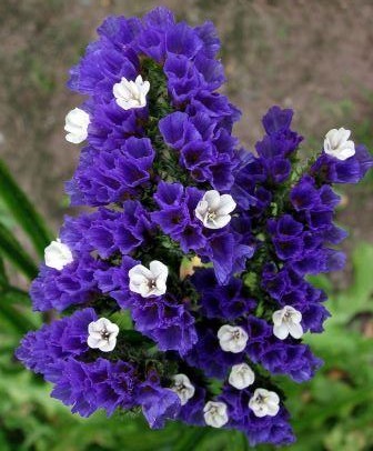 Статица Суприм синяя. Растение высотой до 75 см. Высушенные цветки долго сохраняют свою окраску. Цветет обильно с июля до заморозков. Используют для цветочных аранжировок, рабаток, миксбордеров.