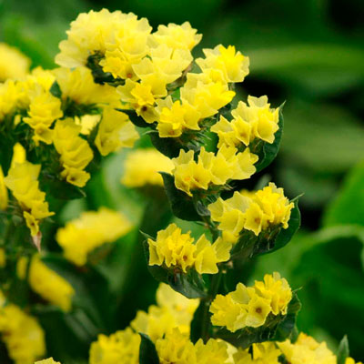 Статица Суприм желтая. Растение высотой до 75 см. Высушенные цветки долго сохраняют свою окраску. Цветет обильно с июля до заморозков. Используют для цветочных аранжировок, рабаток, миксбордеров.