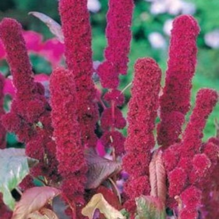 Амарант метельчатый Ред Кафедрал. Растение образует густооблиственный куст высотой около 120 см. Соцветия насыщено-бордовые, колосовидные, вертикальные. Цветёт с июня до морозов. Используют для одиночной посадки, создания групп в пейзажных композициях, для сухих букетов.