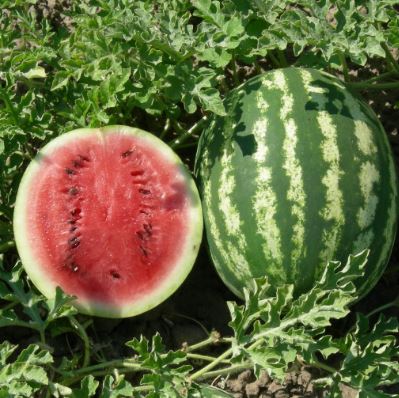 Арбуз Страйк. Среднеспелый сорт типа Кримсон Свит, массой плода 8 -10 кг.