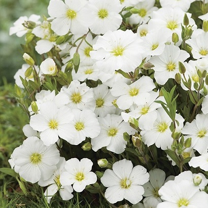 Аренария монтана Близзард Компакт (Arenaria montana Blizzard). Это самая однородная серия из представленных на рынке (высота 12 см) традиционной аренарии (песчанки).