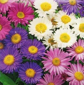 Астра альпийская Смесь окрасок. Многолетнее корневищное травянистое или полукустарниковое растение с горизонтально ветвистым корневищем. Один из лучших видов многолетней астры. Быстро разрастающееся растение, высотой 25-30 см, с одиночными ромашковидными соцветиями диаметром до 4 см. Цветет в мае-июне. Используют для миксбордеров, альпийских горок и срезки.