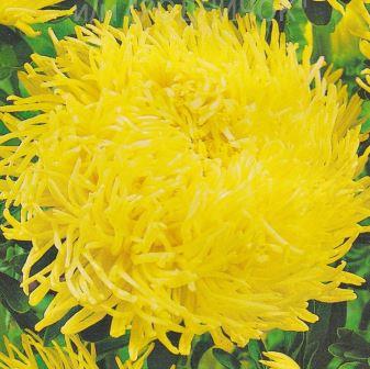 Астра коготковая Золотая. Растение высотой до 75 см, пирамидальной формы. Соцветия округло-плоские, махровые, диаметром 7-10 см. Язычковые цветки сложены по длине в трубки, слегка загнуты внутрь, золотисто-жёлтой окраски, закрывают диск жёлтых трубчатых цветков. Цветет в августе-сентябре. Используют очень широко: для посадки в сборные цветники группами, на рабатки – рядами и на срезку.