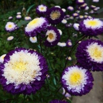 Астра помпонная Превосходный Ракли. Компактное растение высотой до 50 см. Соцветия диаметром 5-6 см, синие с белым центром. На растении до 30 соцветий. Цветет июль-август. Используют очень широко: для посадки в сборные цветники группами, на рабатки - рядами и на срезку.