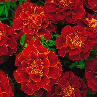 Бархатцы отклоненные махровые Скарлет София. Куст компактный, высотой 25-30 см, густоветвистый. Соцветия гвоздиковидные, махровые, диаметром 3,5-4,5 см. Цветёт с июля по август. Используют для клумб, рабаток, бордюров и создания декоративных пятен.
