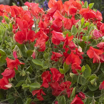 Чина широколистная Красный жемчуг. Цветки крупные, красные, собраны по 3-10 штук в рыхлые, кистевидные соцветия. Цветёт обильно на второй год с июня по сентябрь. Используют для вертикального озеленения, в групповой посадке на газонах при наличии опоры, на срезку для маленьких букетиков.