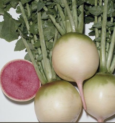 • Корнеплод округлый, верхняя часть зеленая, нижняя белая, головка округлая.
