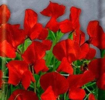 Душистый горошек Спенсер красный. Лазающие крепкие, хорошо облиственные стебли до 250 см длиной. Цветоносы прочные, упругие, 25-45 см длиной. Цветки красные, крупные, по 5-6 в кисти, с нежным приятным ароматом. Парус цветка с волнистым краем. Цветет с конца июня до заморозков. Используется для вертикального озеленения и на срезку.