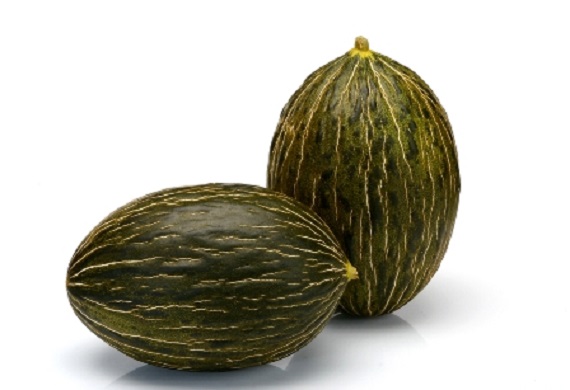 • Плод эллиптической формы, зеленого или темно-желтого цвета с небольшими пятнами. Кожица плотная, морщинистая, с редкой и тонкой сеткой.