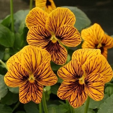 Фиалка рогатая Тайгер Ай (Viola cornuta Tiger Eye). Сорт фиалки рогатой Тайгер Ай имеет окраску с жилкованием. Хороший вариант для внесения разнообразия в стандартный ассортимент продукции.