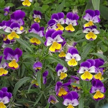 Фиалка рогатая Дама. Стебли образуют плотные подушки. Цветки трёхцветные пурпурно-лавандовые с жёлтым нижним лепестком. Одновременно на кустике насчитывается до 60 цветков. Цветёт с мая по сентябрь. Используют для бордюров, альпинариев и миксбордеров.