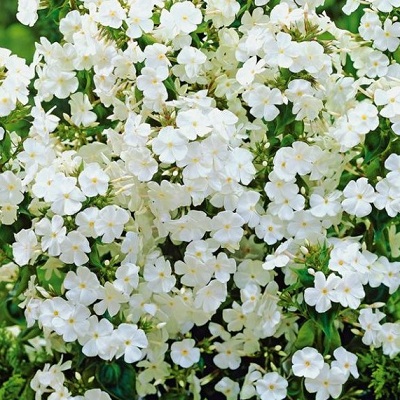 Флокс друммонда Красотка в белом. Кустик компактный, высотой до 25 см. Цветки диаметром 3 см собраны в зонтиковидный щиток. Цветет обильно с июня по октябрь. Используют для посадки на клумбах, рабатках, бордюрах, для оформления каменистых горок.Наибольшей декоративности достигает на солнечных местах и легких, плодородных почвах.