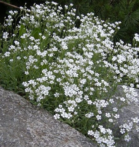 Гипсофила тихоокеанская Бело-розовая (Gypsophila pacifica white-pink) - многолетнее растение высотой 80-100 см, диаметр куста 80 см, в естественной среде произрастает на Дальнем Востоке. Цветёт в июне-июле мелкими бело-розовыми цветами. Широко используется в ландшафтных композициях, прекрасное дополнение к букетам.