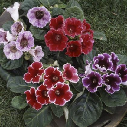 Глоксиния Импресс (Sinningia speciosa F1 Impress) - эффектная серия с немахровыми цветками и крупными яркими цветками в форме колокольчиков.