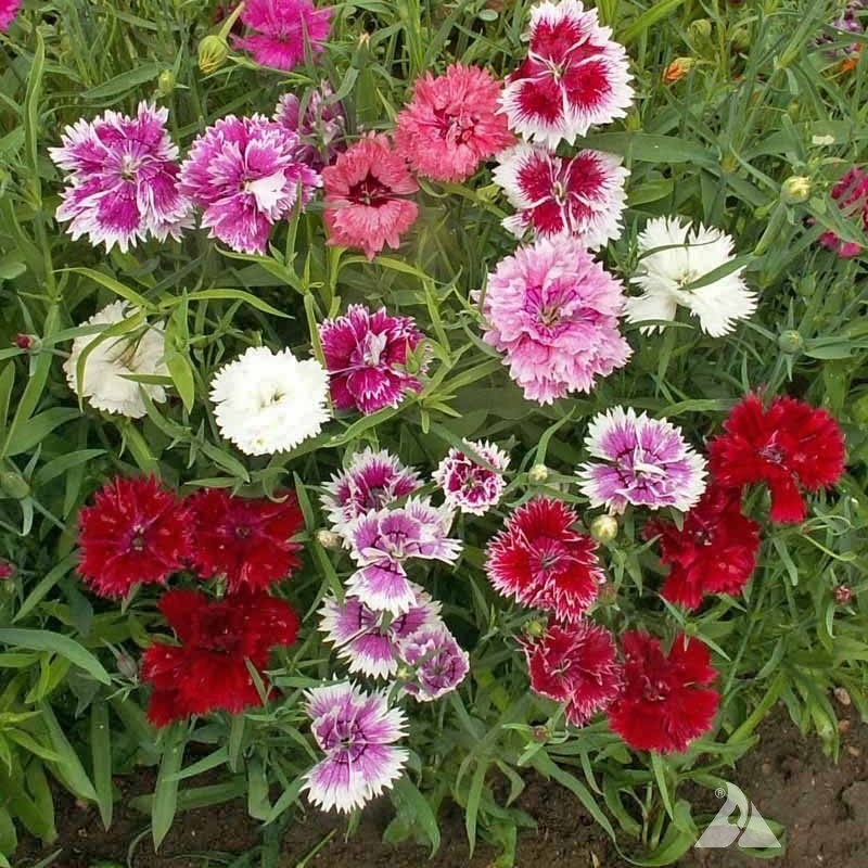 Гвоздика китайская Сударыня - растение с тонкими, узловатыми стеблями, высотой 30 см. Цветки собраны в небольшие соцветия-щитки. Края лепестков звездчато-рассеченные. Смесь состоит из разнообразных окрасок. Цветение обильное, продолжительное. Используют для оформления цветников и бордюров.