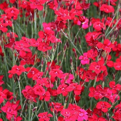 Гвоздика травянка Флэшинг Лайт. Многолетнее растение со стелющимися стеблями высотой около 15 см, образует аккуратные подушковидные дернины. Листья узкие, темно-зеленые зимующие. Цветы многочисленные ароматные, с разрезными краями лепестков. Цветет в июне-июле. Великолепно выглядит в композициях с камнями, по краям цветочных бордюров.