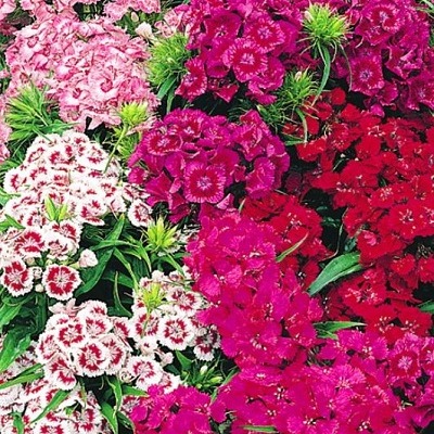 Гвоздика Турецкая Индийский ковер. Кустик высотой 25-30 см. Листья линейно-ланцетные, зеленые. К концу 1-го года выращивания образуется розетка прикорневых листьев. На следующий год растения цветут с конца июня в течение месяца. Используют для сборных цветников, рабаток и для срезки.