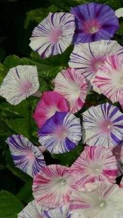 Ипомея Карнавал в Венеции. Стебли достигают 2 м длины. Цветки крупные бело-голубые и бело-розовые, воронковидной формы диаметром 7-9 см. Цветет обильно с июля по октябрь. Широко используются  для вертикального оформления цветников различного назначения.