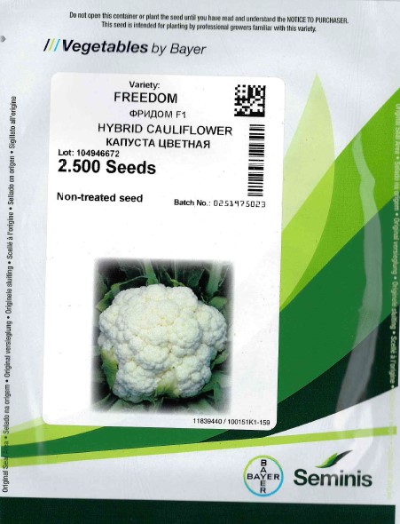 Капуста цветная Фридом F1 - среднеспелый гибрид, рекомендованный для всех типов переработки и заморозки.