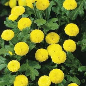 Хризантема девичья Голден бол. Кустистое растение высотой до 25 см. Листья перисто-рассеченные, светло-зеленые. Желтые соцветия - корзинки до 2 см в диаметре, похожи на подушечки. Цветет обильно и продолжительно в течение всего лета. Используют для посадки группами, на рабатках, в бордюрах.