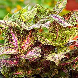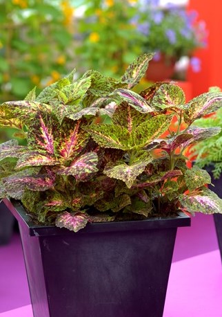Колеус Джиант Эксибишен (Coleus blumei Giant Exhibition™) - серия колеусов высотой до 50 см с хорошим ветвлением и большими широкими листьями.