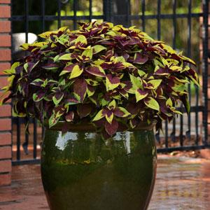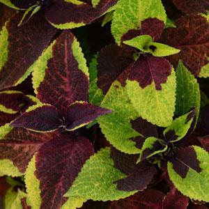 Колеус Премиум Сан (Coleus blumei Premium Sun) - премиальная серия, представлена солнцелюбивыми колеусами с крупными декоративными листьями разнообразных  окрасок.