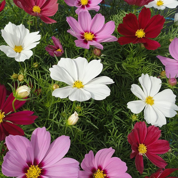 Космея дваждыперистая Казанова (Cosmos bipinnatus Casanova). Однородная серия космеи Казанова обладает генетически обусловленным компактным габитусом растений.