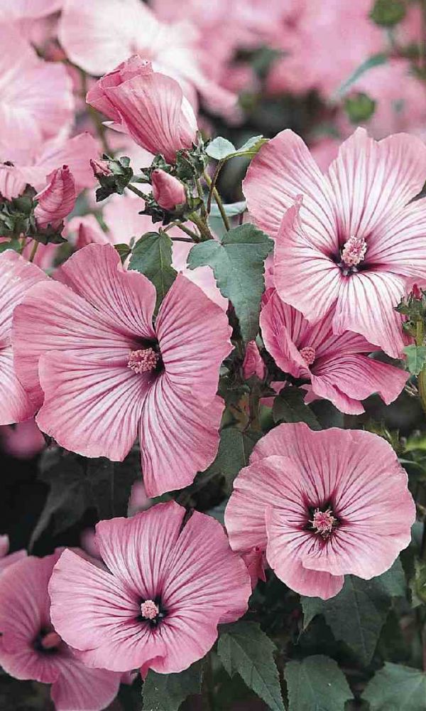 Лаватера Прима. Мощные ветвистые растения высотой 60-80 см. Цветки нежно-розовые с жилками, диаметром 7-9 см. Очень эффектны в групповых посадках, миксбордерах, цветы лаватеры хороши для срезки.