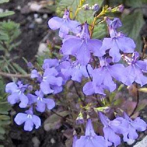Лобелия прямостоячая Кристал Палас (Lobelia erinus Crystal Palace) – этот сорт лобелии характеризуется антоцианово-бронзовой листвой, что, в сочетании с яркими синими цветками, делает растение исключительно декоративным.