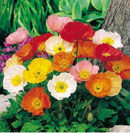 Мак голостебельный сорт "Wonderland", растение высотой до 25 см. Листья слегка голубоватые, цветы одиночные на длинных стебельках, белые, оранжевые, желтые, красные с оттенком, ароматные, цветет с апреля до осени. Чаще выращивается как двулетник. Специфического ухода мак не требует. К почвам не требователен. В жаркие сухие дни необходим полив. На удобрения отзывчив, но без них не погибает. Укрытия на зиму не требует. Используется на альпийских горках, миксбордерах, каменистых садиках и в срезке. Сажать небольшими группами по 3-10 шт. Количество растений на 1 кв. м - 9.