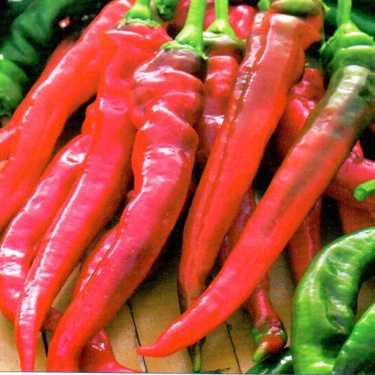 Перец Красный Рог. Высокопродуктивный сорт сладкого перца для выращивания в открытом грунте, пленочных и стеклянных теплицах. Раннеспелый (плоды начинают созревать на 72—80 день после высадки рассады). Плоды кубовидно-удлиненные, четырехкамерные, созревают из темно-зеленых в темно-красные, имеют высокие вкусовые качества. Растение мощное, прямостоячее, хорошо защищает плоды от солнца, одновременно формирует до 12 однородных плодов средней массой 200—250 г. Толщина стенки 10—14 мм. Плоды устойчивы к солнечным ожогам, плотные, легко транспортируются на далекие расстояния, долго сохраняют товарный вид. Хорошо развивается даже в стрессовых условиях (при жаре, воздушной засухе). Устойчив к вирусным заболеваниям. Основные характеристики: универсальность выращивания, раннеспелость, товарность и вкусовые качества, транспортабельность, устойчивость к стрессовым условиям.