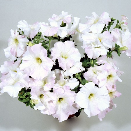 Петуния полуампельная Нивола (Petunia x hybrida Nivola F1) - крупноцветковая полуампельная петуния, формирует побеги в центре куста, не оставляя его голым, цветок 12-14 см.