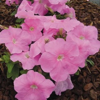 Петуния Розовая пенка. Растение высотой около 30 см. Эффектные воронковидные цветы приятного розового оттенка. Цветение с июня до заморозков. Прекрасно подходит для клумб, рабаток.