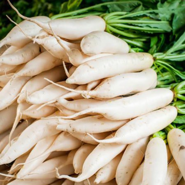 • Корнеплод белый, гладкий, конической формы, длиной 8-12 см, диаметром 2,5-3,5 см, массой 40-60 г.