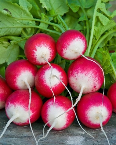 Редис Розово-красный с белым кончиком. Среднеранний сорт. Для выращивания в закрытом и открытом грунте.