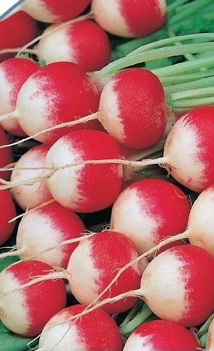 • Корнеплод округлый, розово-красный с белым кончиком, длиной 3,5-5,0 см, диаметр 2,5-4,0 см.