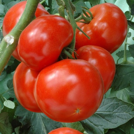 Томат Добрунь F1 - Индетерминантный гибрид для выращивания в зимне-весеннем и летне-осеннем оборотах. Характеризуется вегетативным типом развития растения. Первое соцветие закладывается после 10-11-го листа, последующие через 3 листа. Листья крупные, мощные, окраска варьирует от зеленой до темно-зеленой. Соцветие простое компактное с толстой не заламывающейся осью, обычно на нем формируется 5-6 плодов. Плоды почти округлой формы, с размытым зеленым пятном вокруг плодоножки, которое исчезает при созревании. Окраска зрелых плодов интенсивно-красная. Средняя масса плода составляет 160-180 г. Гибрид F1 Добрунь содержит в генотипе ген rin, поэтому плоды его очень прочные и транспортабельные. Они долго сохраняют свои товарные качества, не размягчаются при хранении в комнатных условиях более 30-ти дней. Гибрид генетически устойчив к вирусу табачной мозаики, кладоспориозу, фузариозу и галловым нематодам.
