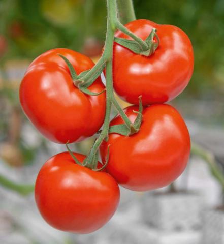 Томат Миакра F1. Интедерминантный гибрид, новинка 2020. Соцветия простые, с 4-5 плодами, при созревании ярко-красного цвета, хороших вкусовых качеств, плоды многокамерные. Высокая динамика отдачи урожая. Масса плода: от 200 до 240. Форма плода: плоско-округлая.