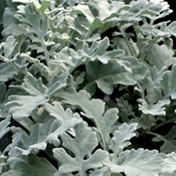 Цинерария приморская Квиксильвер (Cineraria maritima Quicksilver) имеет более компактный габитус чем цинерария Silverado и Silverdust.