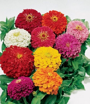 Цинния изящная Смесь окрасок.  Растение мощное, ветвистое от основания, высотой 70-90 см. Полушаровидные махровые соцветия, диаметром 9-10 см, разнообразной окраски. Язычковые цветки ложкообразно вогнуты, расположены в соцветии черепитчато. Цветет с середины июня по сентябрь. Широко используют для цветников и на срезку.