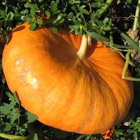 Тыква Руж Виф Детамп. Растение очень мощное и здоровое, холодостойкое и неприхотливое. Плоды очень крупные, красно-оранжевые, с сочной мякотью. Отлично подходит для производства соков и детского питания, благодаря крупным плодам с высоким содержанием каротина и деликатным ароматом. Средняя урожайность 100т/га.