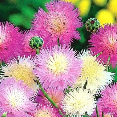 Василек мускусный Императорская смесь окрасок. Высокий василек с приятным ароматом корицы. Растение до 70 см высотой. Листья глубоко разрезанные и зубчатые, не опушенные, ярко-зеленые. Соцветия - одиночные корзинки 6-7 см в диаметре. Зацветает растение в июне и обильно цветет до октября. Используется для посадки в цветниках, бордюрах, на клумбах и на срезку.