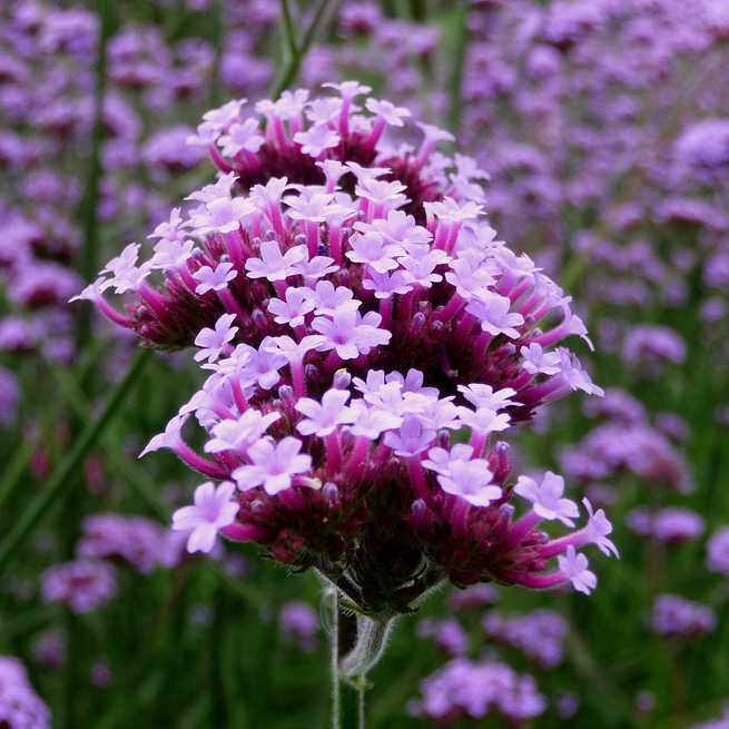 Вербена бонарская Финесс. Высокая эффектная вербена с фиолетовыми соцветиями.