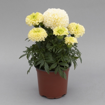 Бархатцы прямостоячие Вайтголд Мини (Tagetes erecta Whitegold Mini) - карликовые прямостоячие бархатцы с уникальной практически чисто белой окраской.