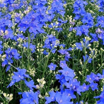 Растение изящной компактной формы высотой около 40 см, с сильно ветвящимися побегами. Листья на длинных черешках, пальчато-рассеченные, сверху зеленые, снизу беловатые. Цветки открытые, ярко-синие, до 3,5 см в диаметре, собраны в редкую кисть на конце стебля. Цветет июль-август. Используют для создания смешанных групп, рабаток, в миксбордерах и на срезку.