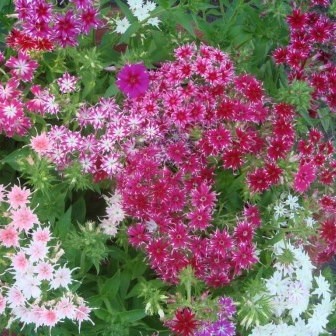 Флокс Мерцающая звезда. Звездообразные душистые цветы. Кустики компактные, низкие, 30 см высотой. Плотные яркие соцветия с остроконечными лепестками достигают в диаметре 10 см. Цветет обильно с июня до конца сентября. Используют для бордюров, обрамления клумб.