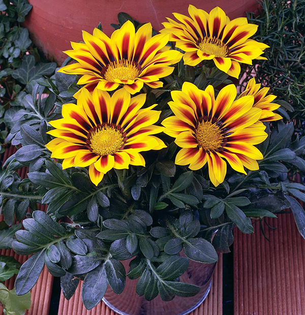 Газания жестковатая Кисс (Gazania rigens Kiss) - выровненная по габитусу и времени цветения серия.