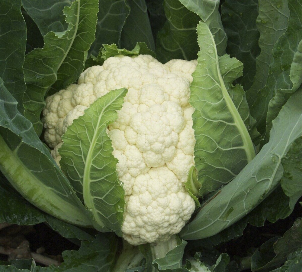 Капуста цветная Карнак F1. Гибрид включен в Госреестр для выращивания в ЛПХ. Рекомендуется для использования в домашней кулинарии. Среднепоздний - позднеспелый гибрид.Вегетативный срок, дней: 100-110.Норма высева, Га: 40000.Посев: для открытого грунта.Оборот: весна-лето.Розетка листьев вертикальная. Лист длинный, серо-зелёный с восковым налётом средней интенсивности, пузырчатый, от волнистого до сильноволнистого по краю. Головка округлая, беловатая, покрытая, от мелкобугристой до бугристой. Масса головки - 1,2 кг. Вкусовые качества хорошие. Урожайность - 4,8 кг./кв.м.Долго не теряет товарных качеств в поле, набирая вес. Удобен в уборке и переработке.