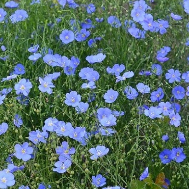 Лен Небесная лазурь. Растение высотой до 50 см. Цветки небесной голубизны на тоненьких стебельках, открываются только в солнечную погоду. Цветет в июне - июле. Используют для рабаток и различных цветников.